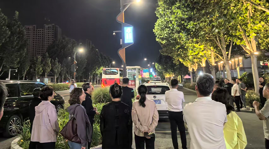 25日晚8点10分,会议组织与会代表对保定市区北二环、永华大街、锦湖北大街、保定东站开泰街、七一路等道路的智慧灯杆、高性能LED灯具、储能式应急照明提升改造项目进行了实地考察。与会代表与项目相关企业互动交流,了解创新技术应用情况。