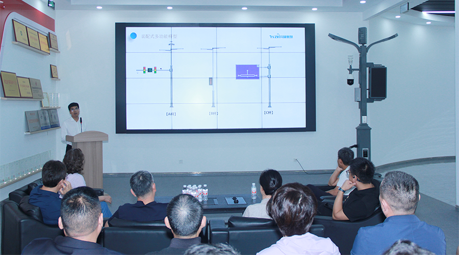 河北同体智慧科技有限公司技术总工孙剑锋,向与会代表介绍了公司自主研发的第二代多功能杆---装配式多功能杆,实现了模块化、标准化、智能化制造,装配、运输便捷等功能特点。