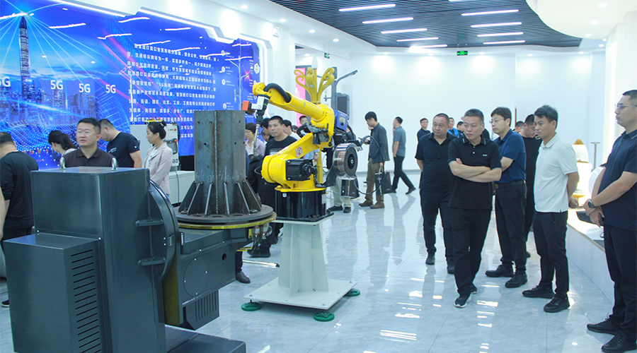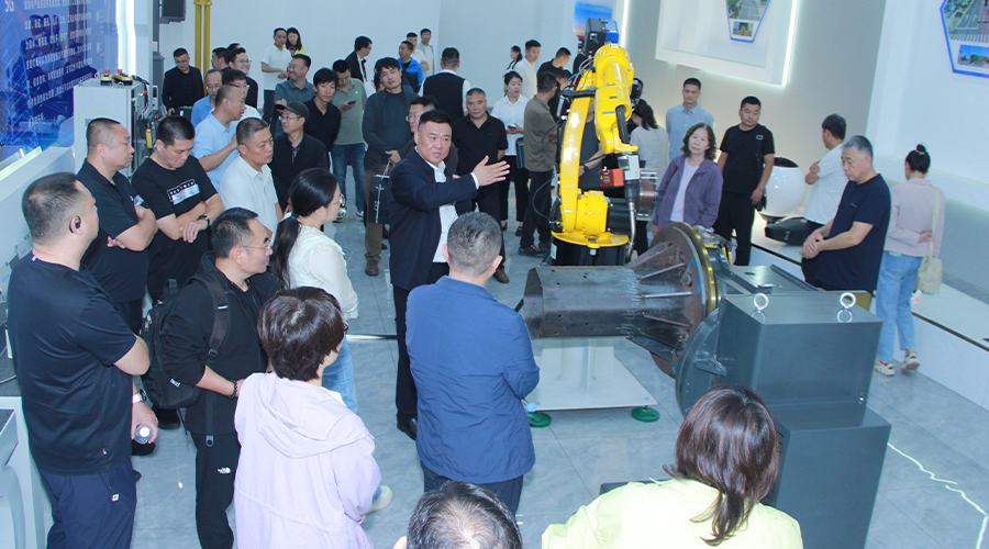 在产品展厅,宫志伟董事长向代表们介绍了公司自主研发的自动焊接的机器人,大大提高了焊接的精准度,大幅提升了焊接质量和工作效率。